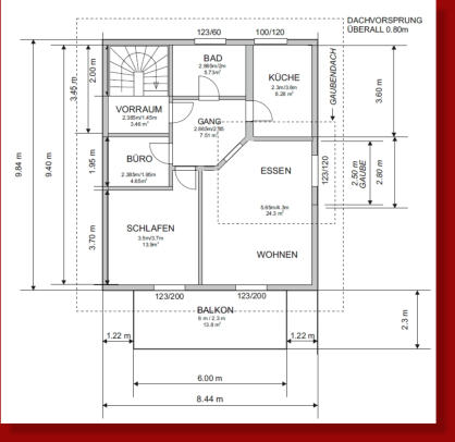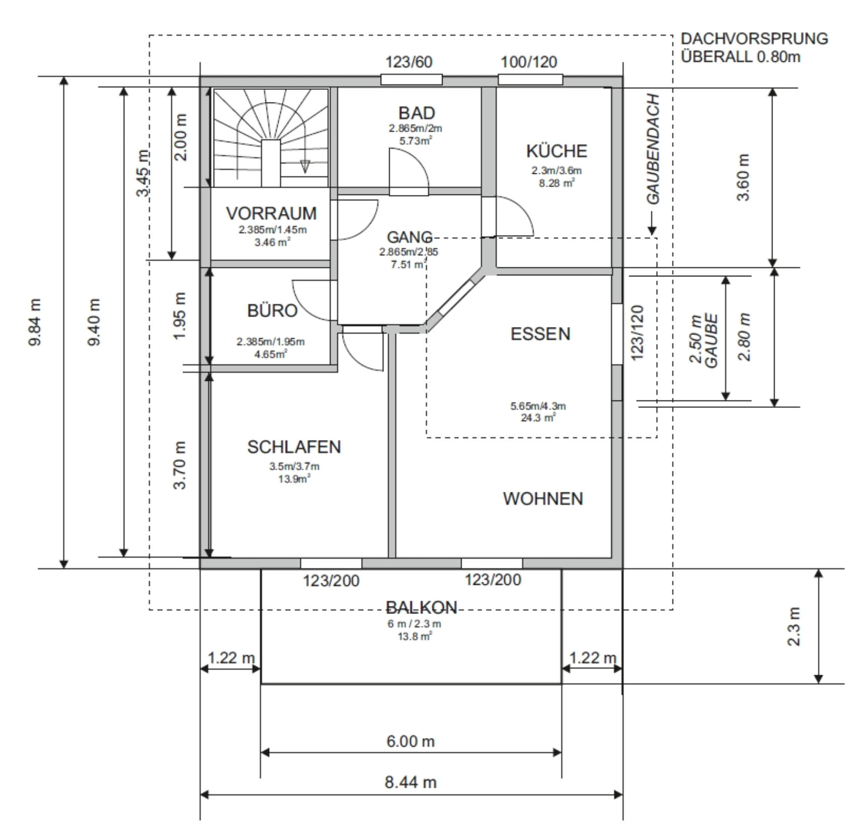 Gesamtfläche inkl. Vorraum (3.5 m2) und Balkon (14 m2) = 81.6 m2
